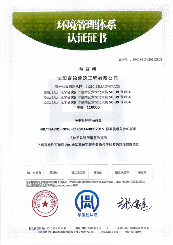 環(huán)境管理體系認(rèn)證證書(shū)