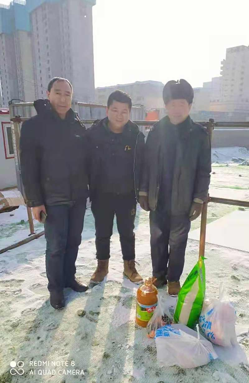 春節(jié)將至,所有工程項(xiàng)目均已停工,為了項(xiàng)目的春節(jié)期間的安全,每個(gè)項(xiàng)目都留有2名同志值班。2月19日上午,領(lǐng)導(dǎo)班子主要成員深入各項(xiàng)目,看望、慰問春節(jié)期間依舊奮戰(zhàn)的一線員工,為他們帶去春節(jié)禮物和新春祝福,為員工帶來(lái)溫暖。