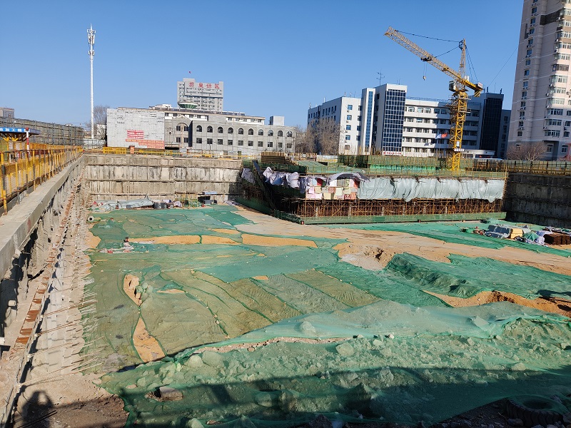基坑目前已完成全部支護樁施工,完成90%錨索和噴護施工,大部分基坑已開挖至坑底,僅剩土方坡道處未施工。根據(jù)基坑監(jiān)測單位提供的數(shù)據(jù),基坑經(jīng)過越冬后基坑變形都在設(shè)計允許范圍內(nèi),基坑施工質(zhì)量滿足規(guī)范及圖紙要求,并多次在萬科集團地下評估中取得好成績,進入集團評估紅榜。