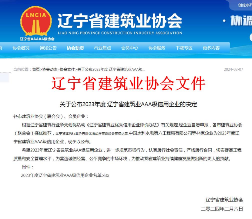 根據(jù)遼寧省建筑行業(yè)爭先創(chuàng)優(yōu)活動(dòng)《遼寧省建筑業(yè)優(yōu)秀企業(yè)認(rèn)定辦法》《遼寧省建筑業(yè)企業(yè)優(yōu)秀經(jīng)理認(rèn)定辦法》《遼寧省建筑業(yè)企業(yè)優(yōu)秀項(xiàng)目經(jīng)理認(rèn)定辦法》《遼寧省建筑業(yè)優(yōu)秀信用企業(yè)評(píng)價(jià)辦法》有關(guān)規(guī)定,各市建筑業(yè)協(xié)會(huì)(聯(lián)合會(huì))擇優(yōu)推薦,遼寧省建筑行業(yè)爭先創(chuàng)優(yōu)活動(dòng)評(píng)審委員會(huì)審核認(rèn)定,沈陽帝鉑建筑工程有限公司被評(píng)為2023年度遼寧省建筑業(yè)AAA級(jí)信用企業(yè)。