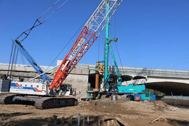 長青橋東西兩側(cè)新建橋梁下方采用長螺旋鉆孔灌注樁作為臨時支架基礎(chǔ),樁徑為800mm,樁長為10m和15m。